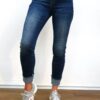jeans red button